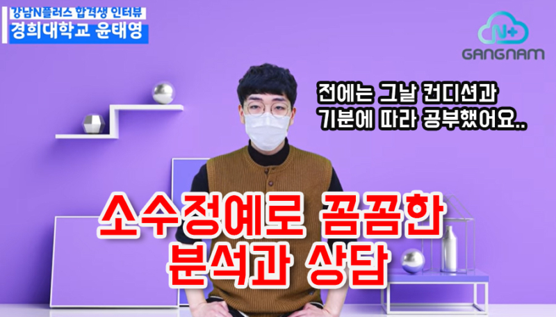 소수정예인 강남N플러스는 지속적인 관리를 받으면서 공부할 수 있어서 좋았습니다.