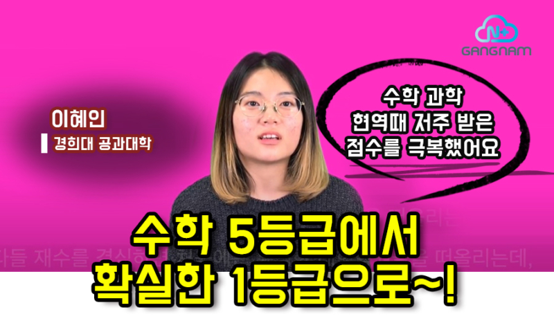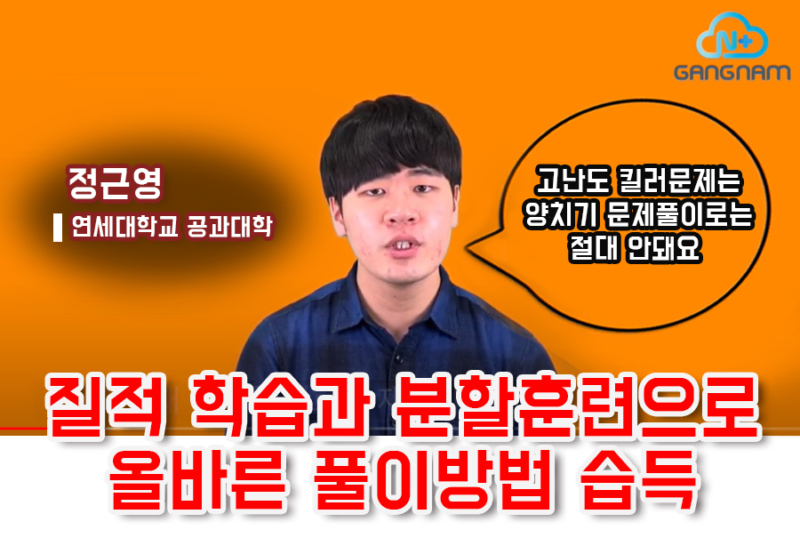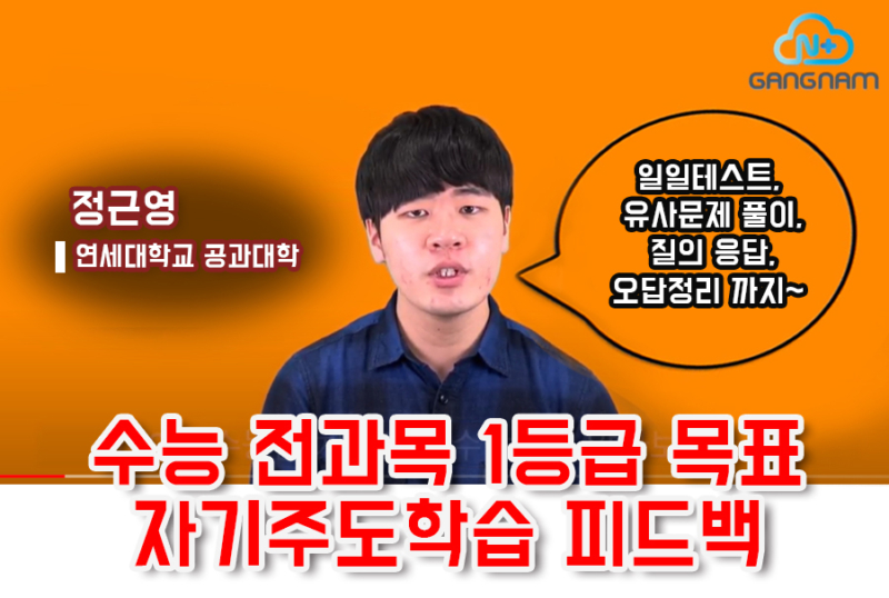 많은 학생들이 자습시간 확보 때문에 독학을 고민하는데, 강남N플러스에서는 저의 공부단계에 맞는 수업을 듣고, 충분한 자습이 가능했다는 점이 성적향상에 도움이 되었던 것 같습니다.