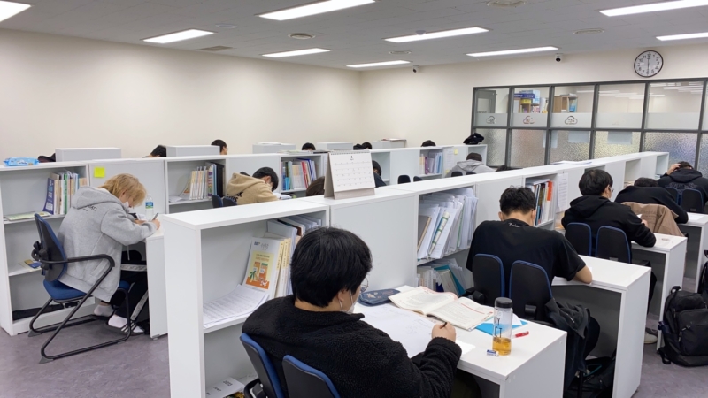 자습실 같은 경우에는 자습실 관리 실장님께서 정숙한 공부하는 분위기를 조성해주셔서 공부에 집중할 수 있습니다. 주기적으로 학생들을 체크 하시면서 조는 학생의 경우 스탠딩 책상을 통해 잠을 깨우고 다시 들어오게 하시는 등 공부를 하기 위한 최상의 상태입니다.