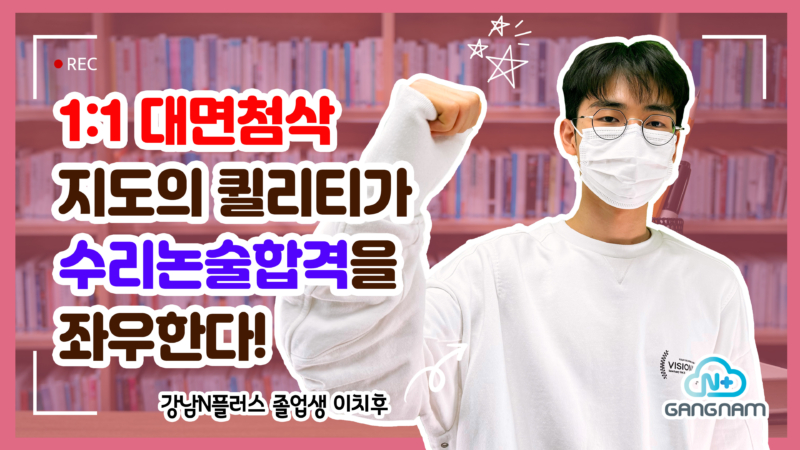 하지만, 재수 때는 강남N플러스 논술과정 1:1 대면 첨삭을 통해 글을 쓰는 법에 대해 제대로 배운 것이 논술에 최종합격할 수 있었던 비법 같습니다. 또한, 파이널 논술수업을 들으며 출제예상 문제들을 많이 풀었는데, 실제 대학 논술시험에서 비슷한 유형의 문제들이 많이 합격하는 데 큰 도움이 되었습니다.