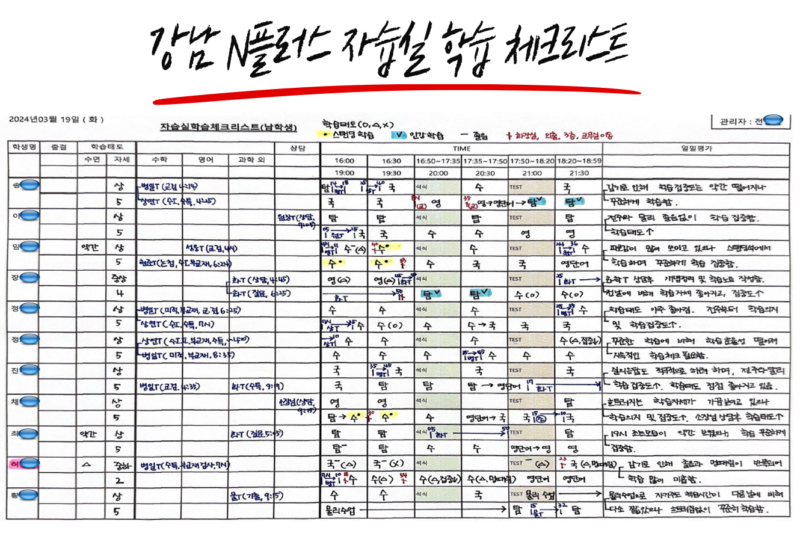 강남N플러스에서 공부하면 선생님들과 직접 매일 소통하면서 자신만의 플랜과 학원의 커리큘럼과 플랜 사이에서 최적화된 나만의 공부가 가능합니다.