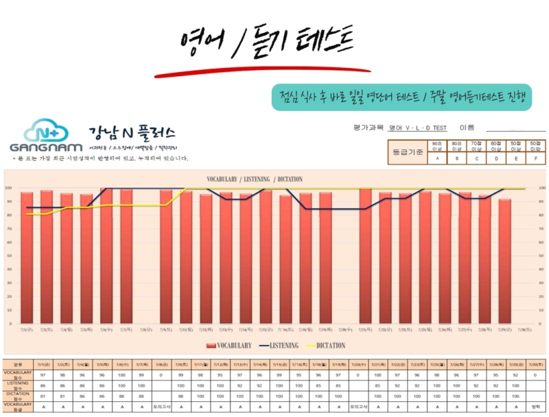 이러한 성적이었지만 학원의 체계적인 관리와 좋은 선생님들의 안내에 따라 열심히 노력한 결과