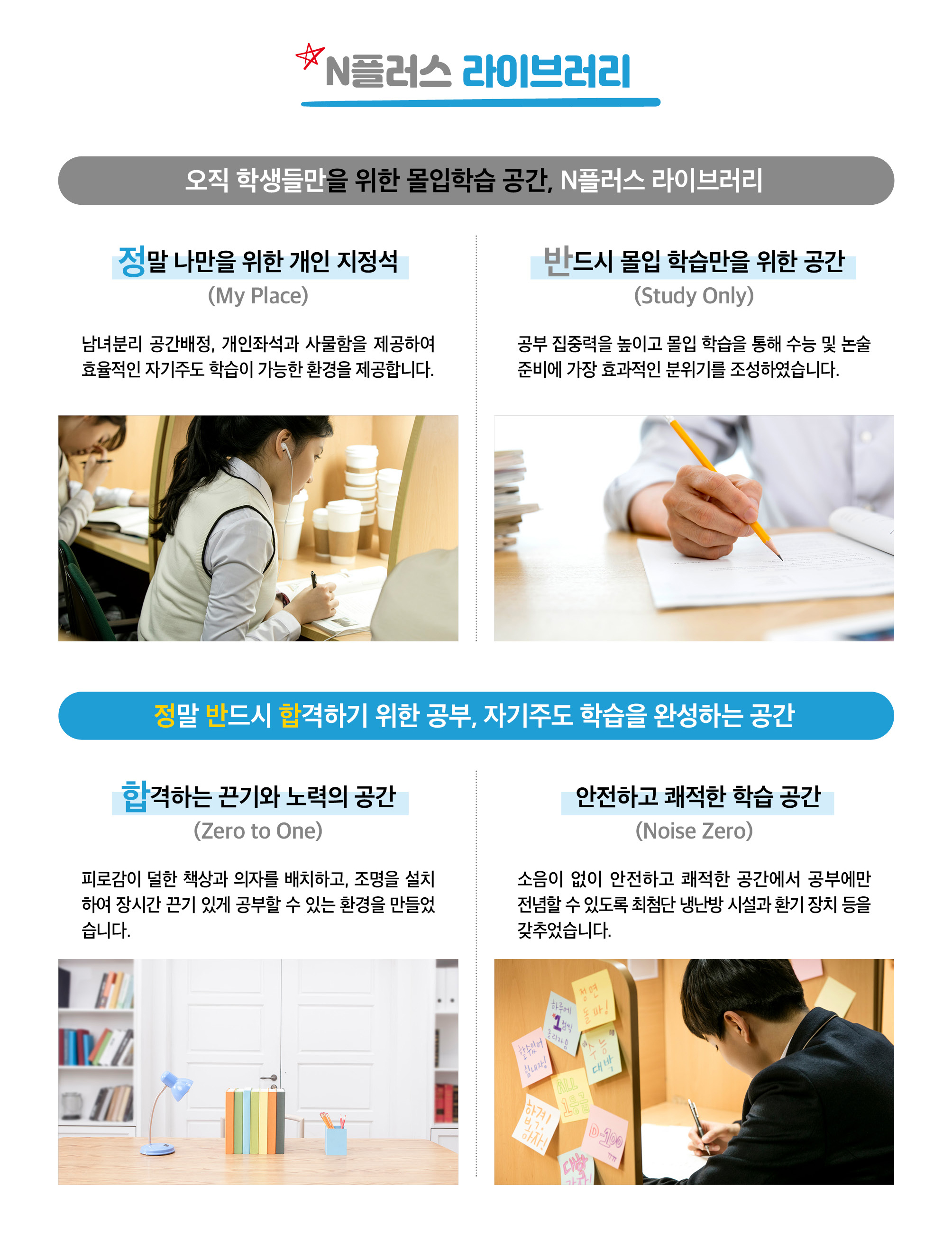 “프리미엄 자습실(1인 1지정석), 나만의 공간에서 공부 몰입”